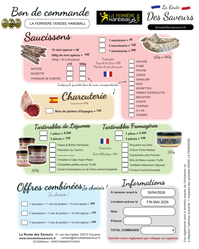 Le club lance sa vente de saucissons et vins tout au long du mois d’avril !